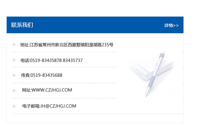 地址:常州市新北區友邦商務大廈1幢16、17層  電話:0519-85101652  傳真:0519-85112595  郵編:213022  網址:www_cz-jiayue_cn.chinacitong.com  郵箱:xiajifengaa@163.com